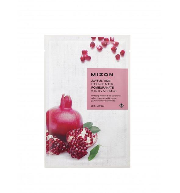 Mizon Joyful Time Essence Mask – Pomegranate è una maschera in tessuto ideata per offrire un trattamento rigenerante ispirato alla cosmesi coreana. L’estratto di melograno, ricco di antiossidanti naturali e vitamina C, aiuta a contrastare i segni dell’invecchiamento, migliorando l’elasticità della pelle e rendendola più compatta e luminosa.